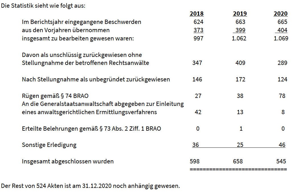 Wie in den vergangenen Jahren war auch die Bearbeitung von Beschwerden über Rechtsanwältinnen und Rechtsanwälte ein Schwerpunkt der Arbeit des Kammervorstands.