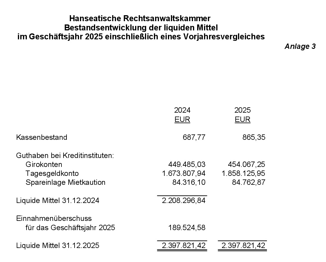 Anlage 3: Bestandsentwicklung der liquiden Mittel im Geschäftsjahr 2025