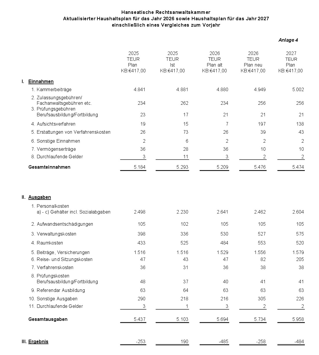 Anlage 4: Aktualisierter Haushaltsplan für das Jahr 2026